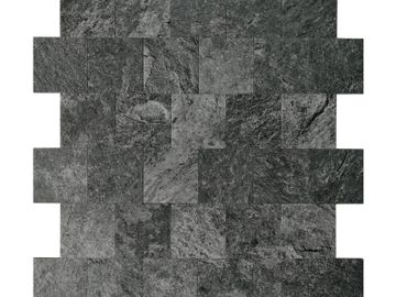 A picture or pattern produced by arranging together small colored pieces of hard material. Used for kitchen and floor.