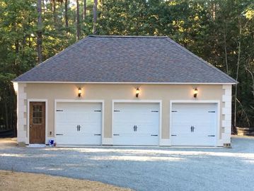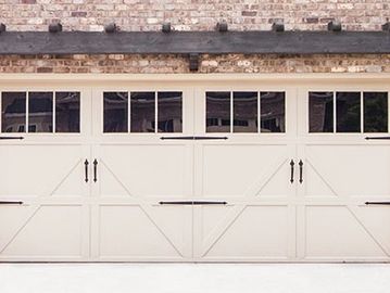 This particular type of door features at least 4 horizontal panels. These panels are attached or rolled up together.
